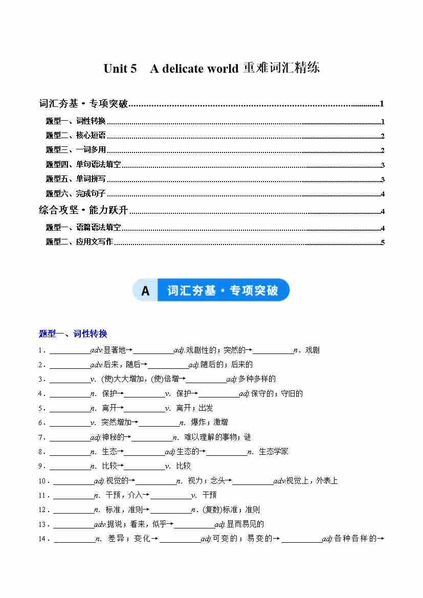 Unit 5 A delicate world(重难词汇精练)(教师版)