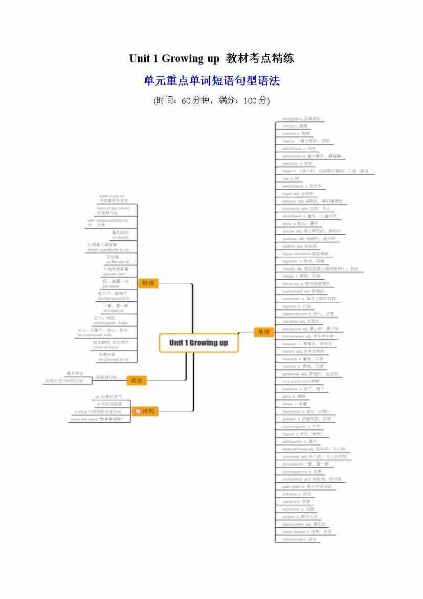 Unit 1 Growing up 单词短语句型语法(教材考点精练)(教师版)