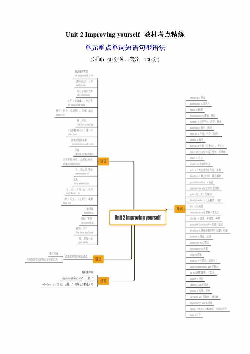 Unit 2 Improving yourself 单词短语句型语法(教材考点精练)(教师版)