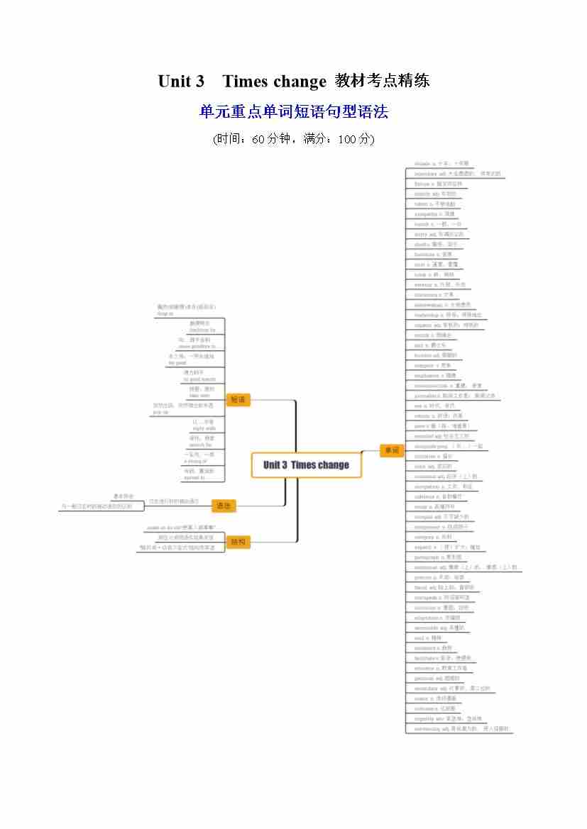 Unit 3 Times change 单词短语句型语法(教材考点精练)(教师版)