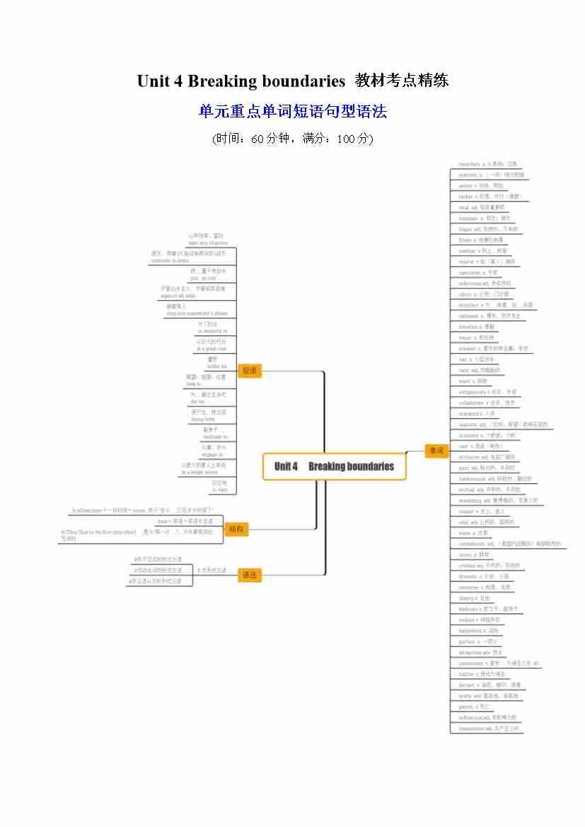 Unit 4 Breaking boundaries 单词短语句型语法(教材考点精练)(学生版)