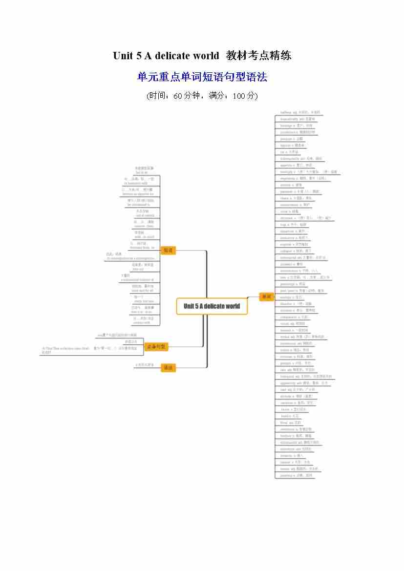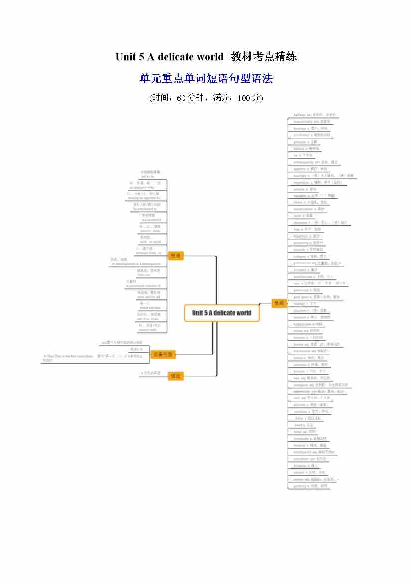 Unit 5 A delicate world 单词短语句型语法(教材考点精练)(教师版)