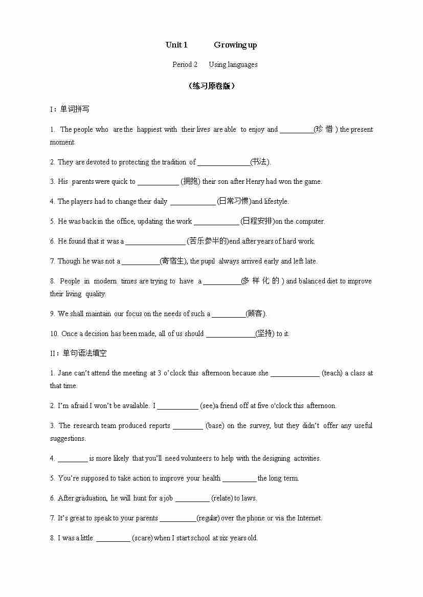 Unit 1 Growing up Period 2 Using language 练习(原卷版)-(外研版选择性必修第二册)