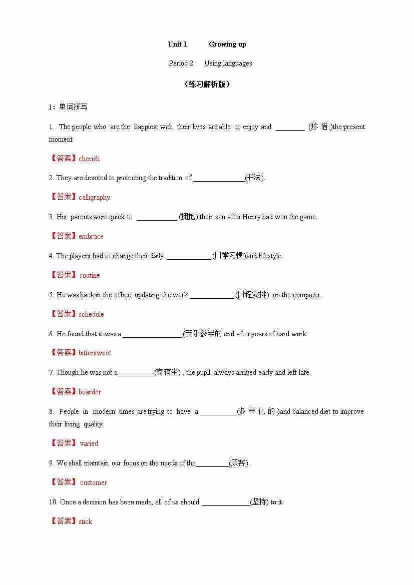 Unit 1 Growing up Period 2 Using language 练习(解析版)-(外研版选择性必修第二册)