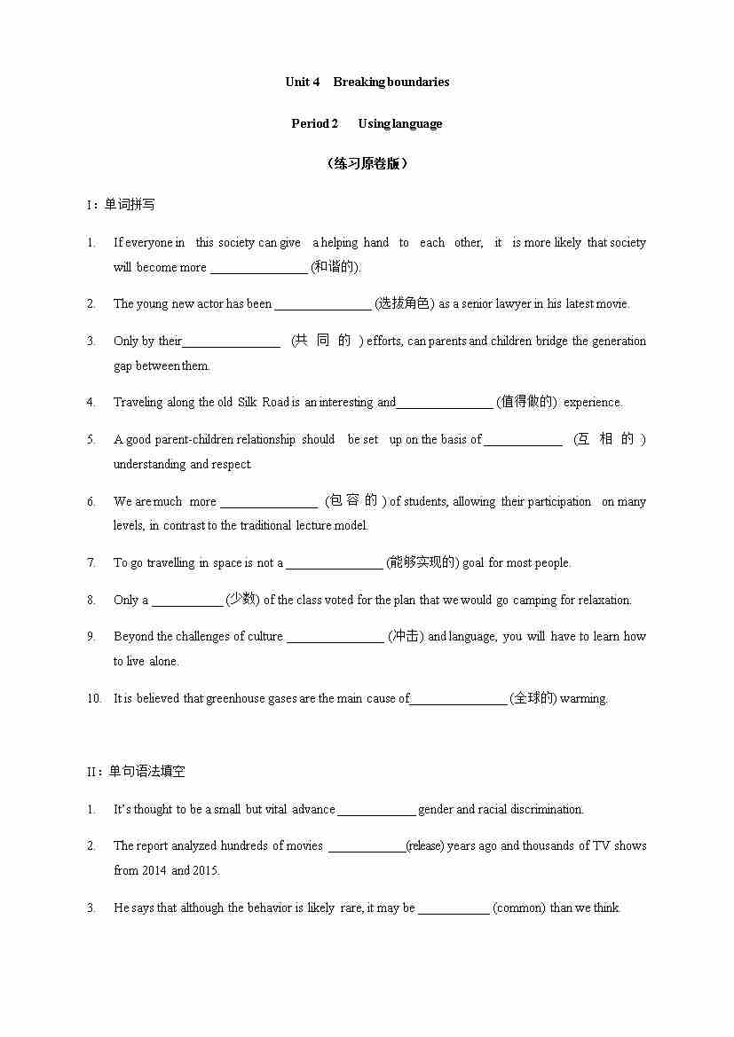 Unit 4 Breaking boundaries Period 2 Using language 练习(原卷版)