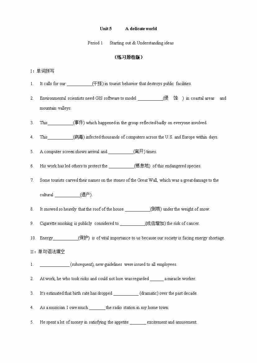 Unit 5 A delicate world Period 1 Starting out and understanding ideas 练习(原卷版)