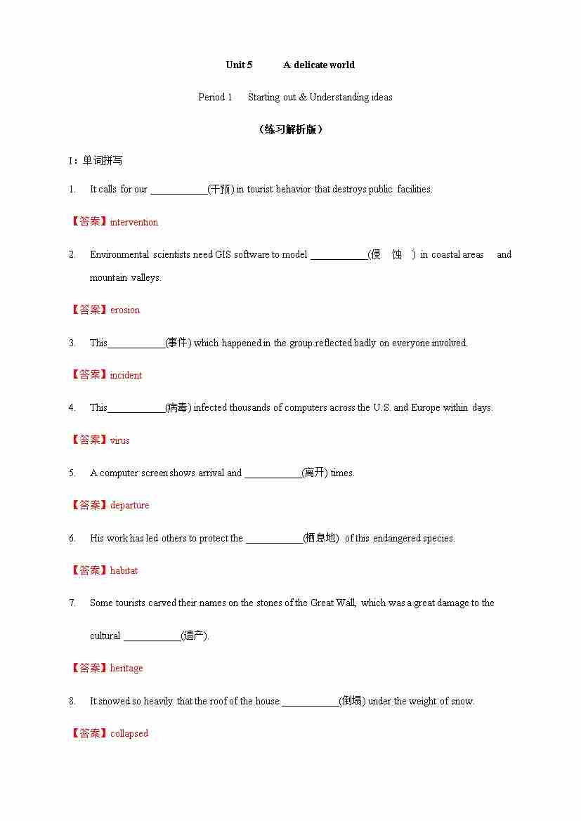 Unit 5 A delicate world Period 1 Starting out and understanding ideas 练习(解析版)