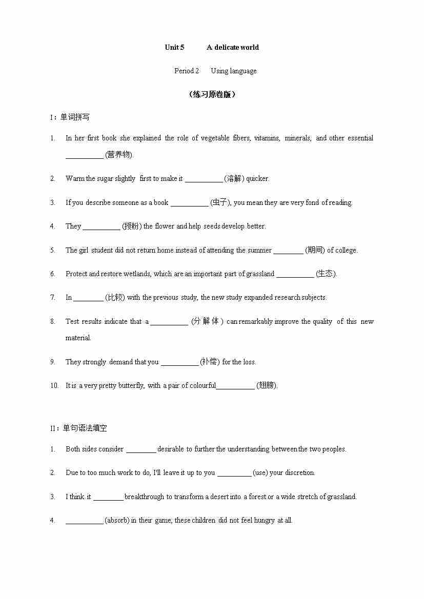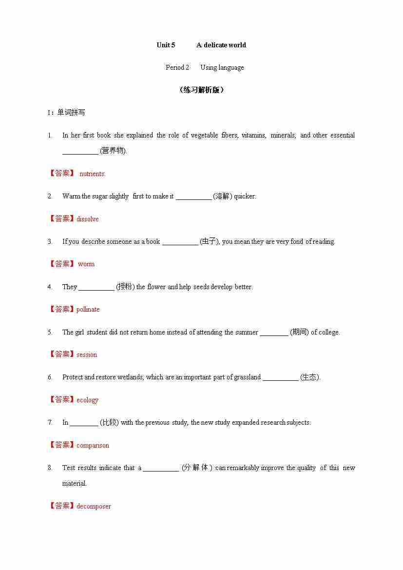 Unit 5 A delicate world Period 2 Using language 练习(解析版)
