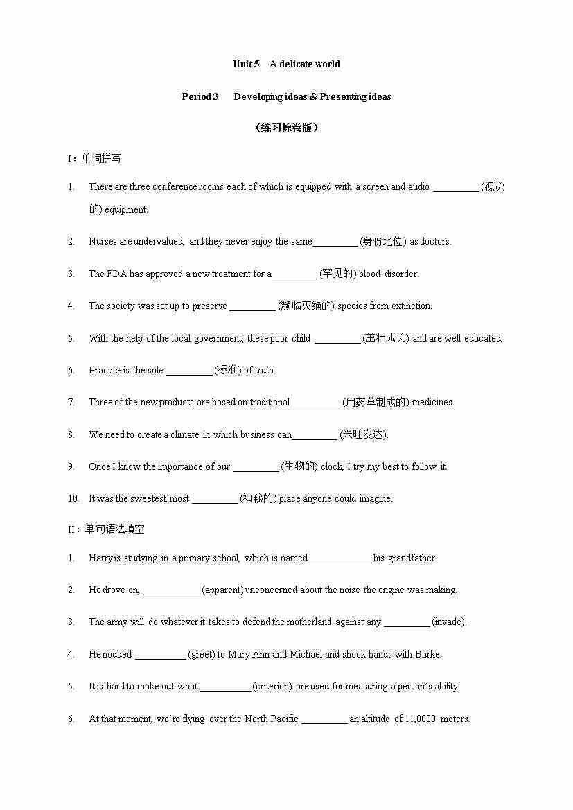 Unit 5 A delicate world Period 3 Developing ideas and presenting ideas 练习(原卷版)