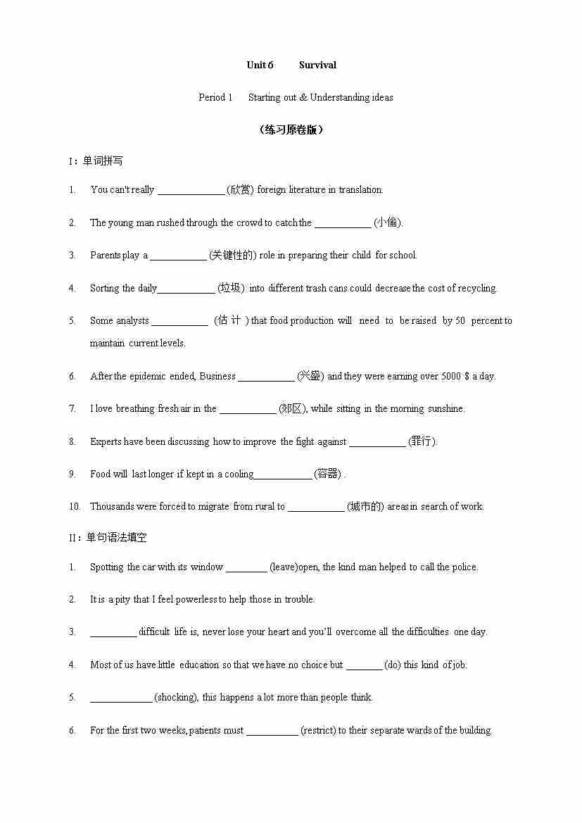 Unit 6 Survival Period 1 Starting out and understanding ideas 练习(原卷版)