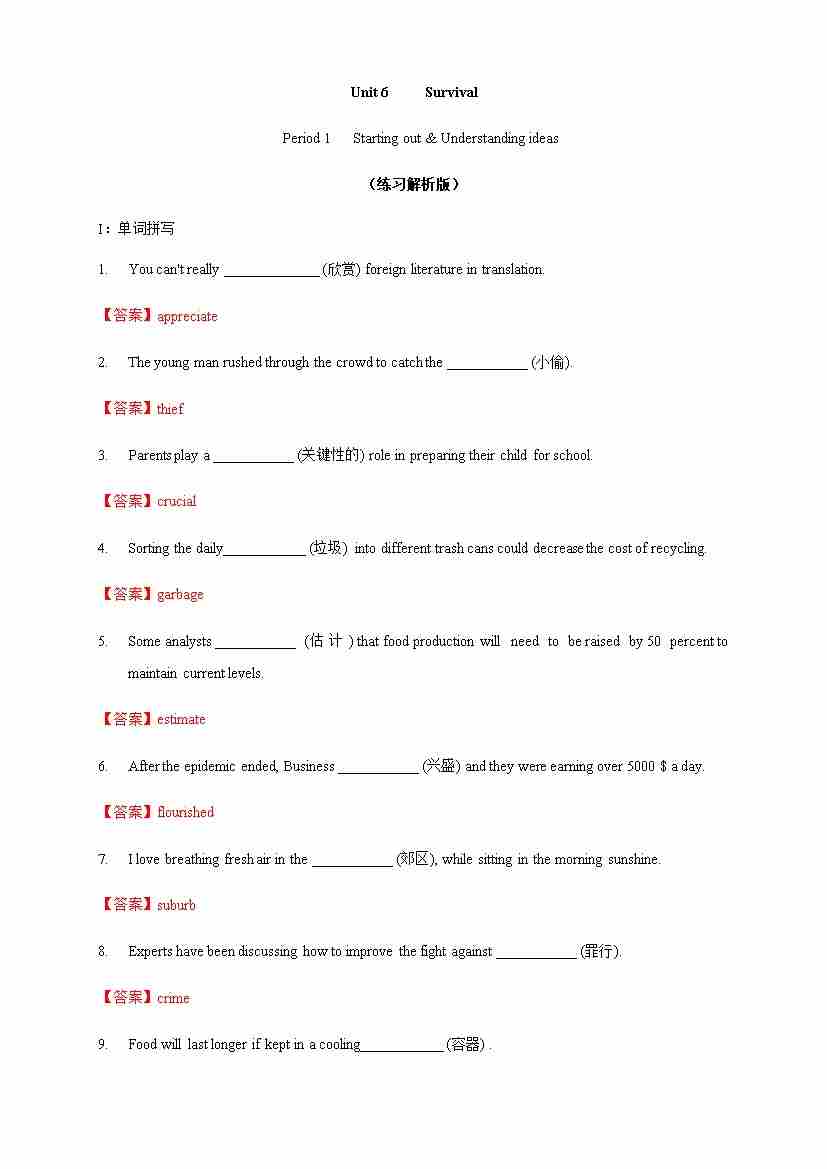 Unit 6 Survival Period 1 Starting out and understanding ideas 练习(解析版)