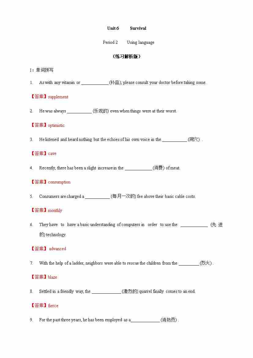 Unit 6 Survival Period 2 Using languages 练习(解析版)