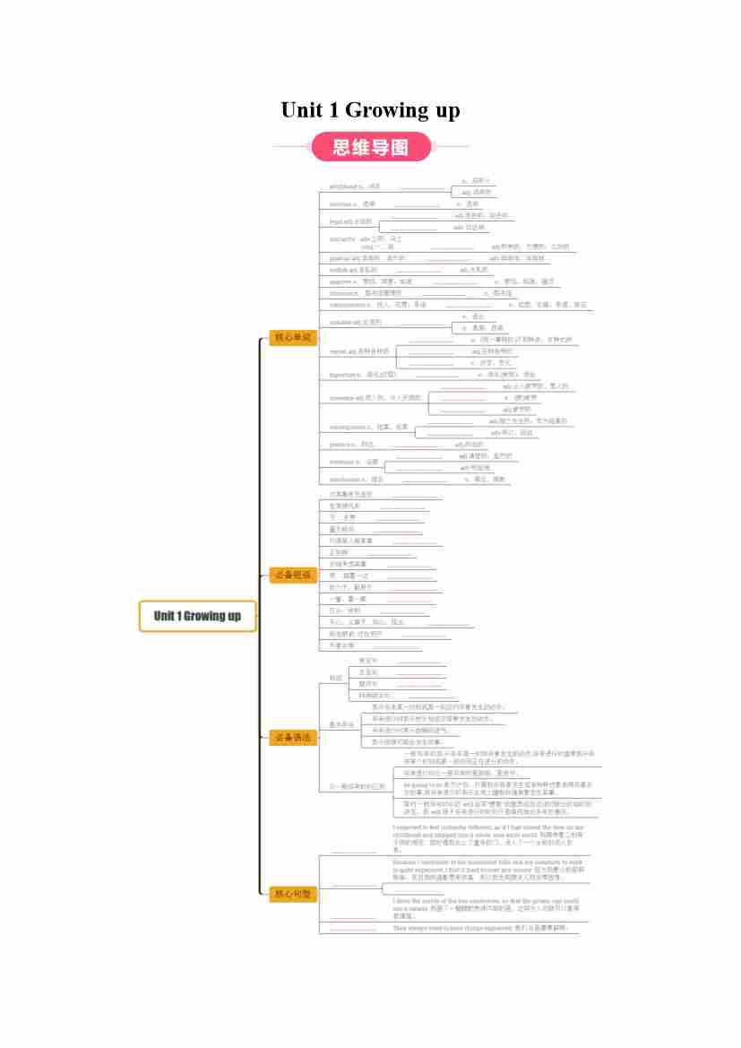 Unit 1 Growing up(知识清单)(挖空版)