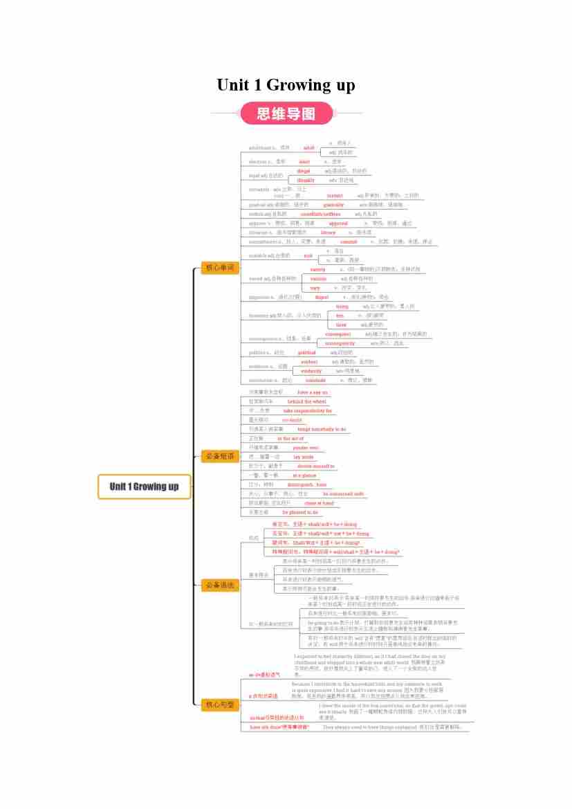 Unit 1 Growing up(知识清单)(答案版)