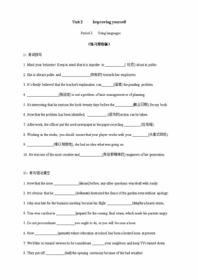 Unit 2 Improving yourself Period 2 Using language 练习(原卷版)