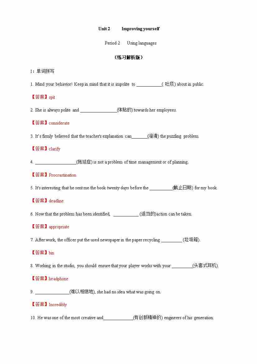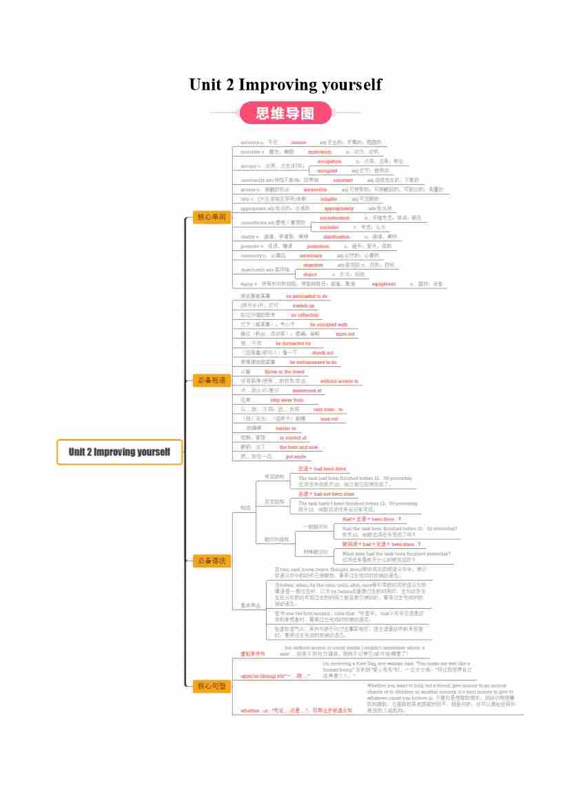 Unit 2 Improving yourself(知识清单)(答案版)