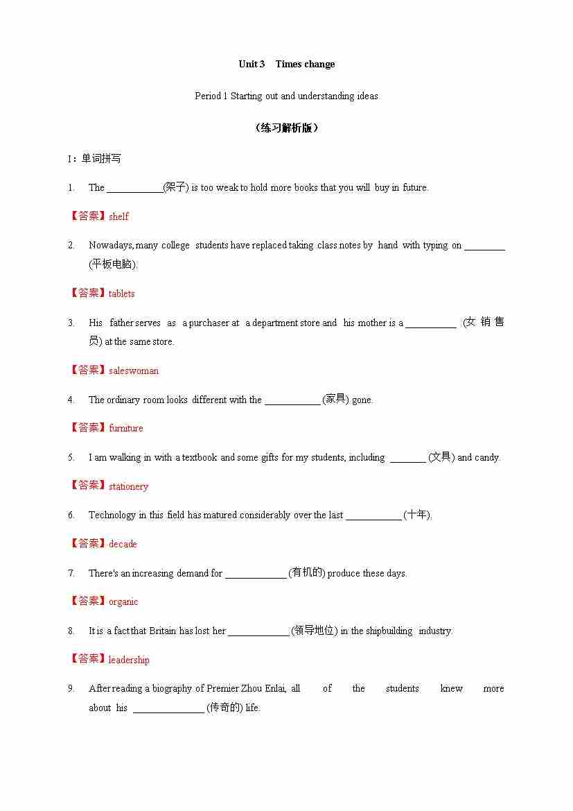 Unit 3 Times change Period 1 Starting out and understanding ideas练习 (解析版)