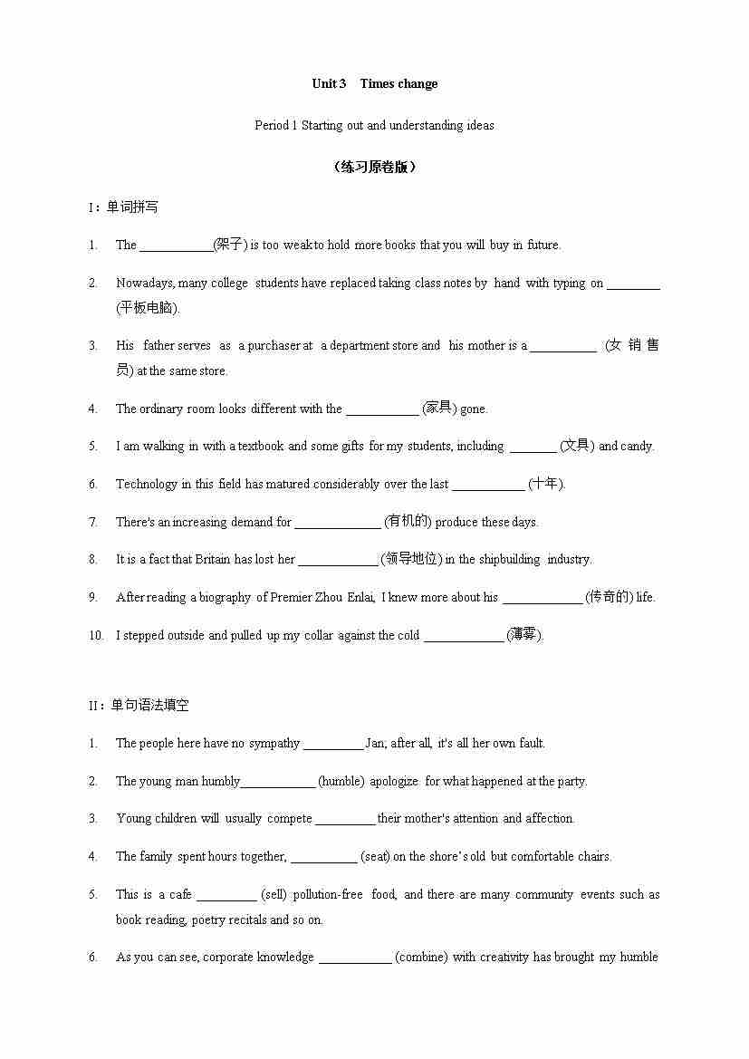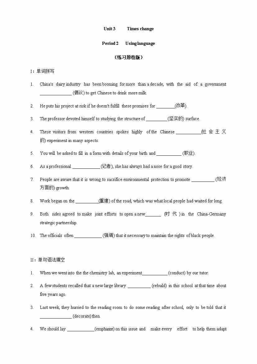 Unit 3 Times change Period 2 Using languages 练习(原卷版)