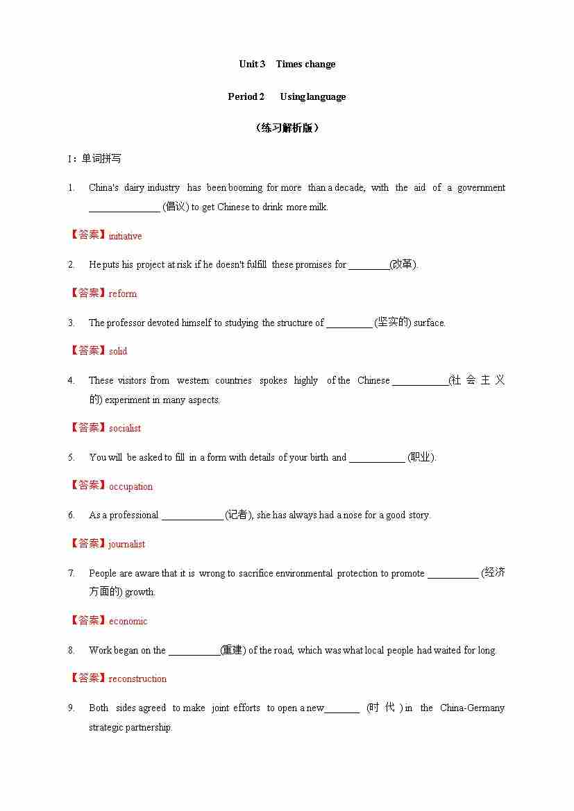 Unit 3 Times change Period 2 Using languages 练习(解析版)