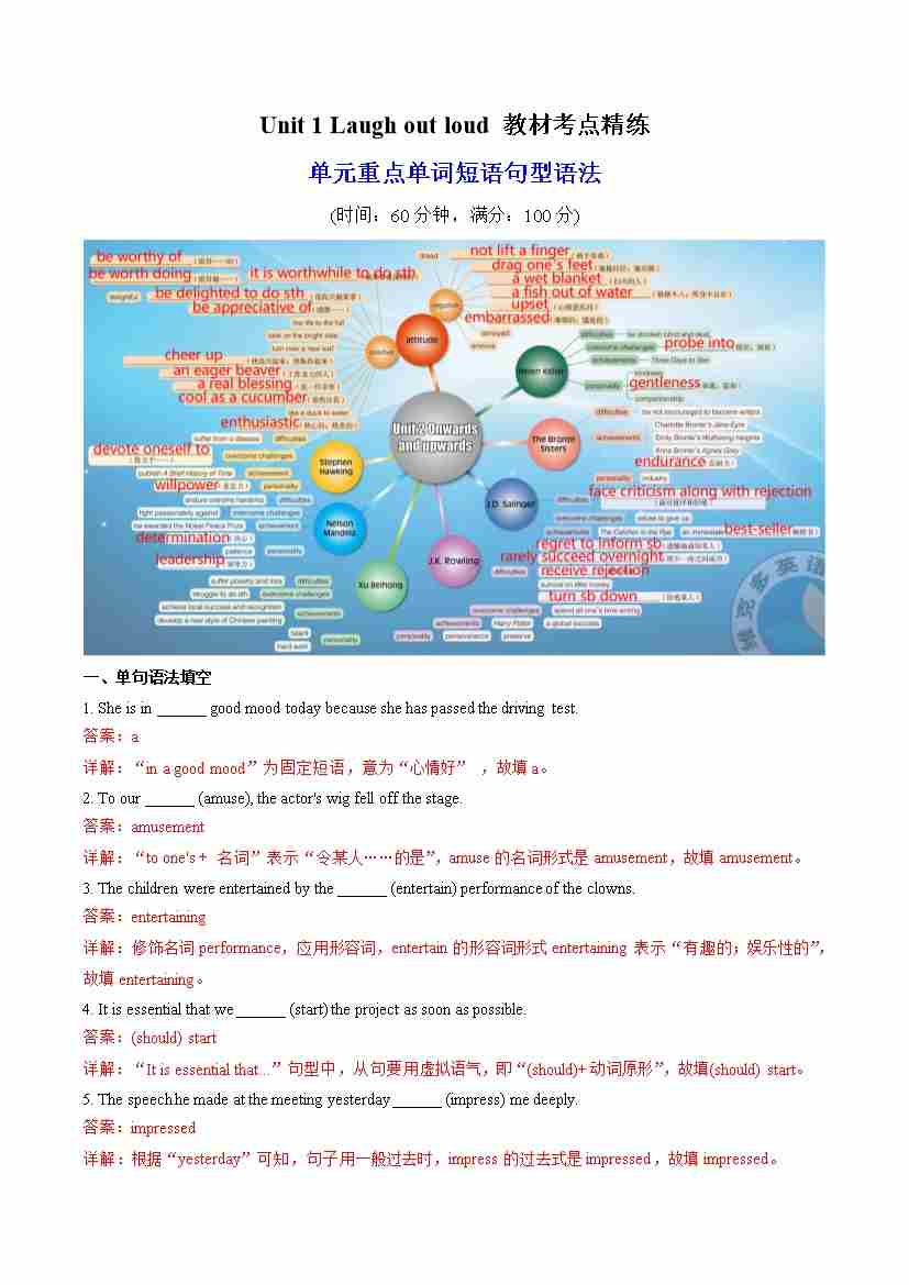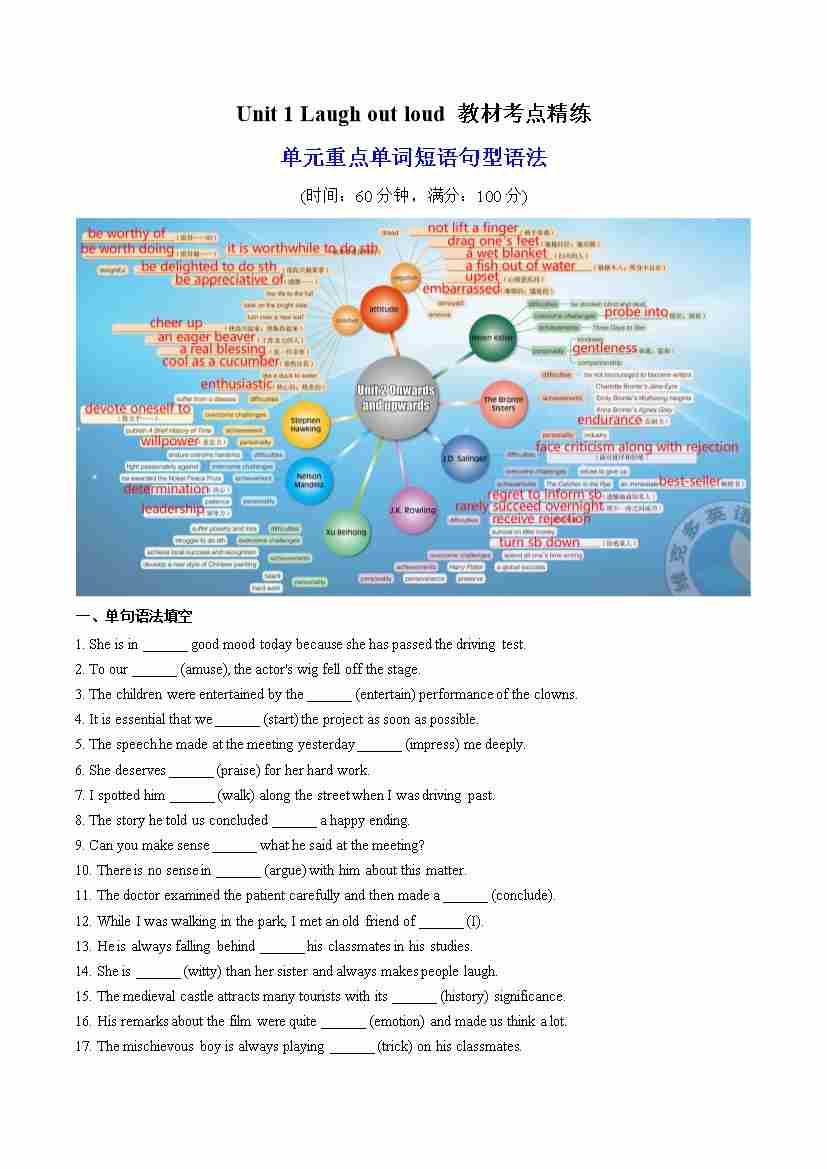 Unit 1 Laugh out loud 单词短语句型语法(教材考点精练)(教师版)