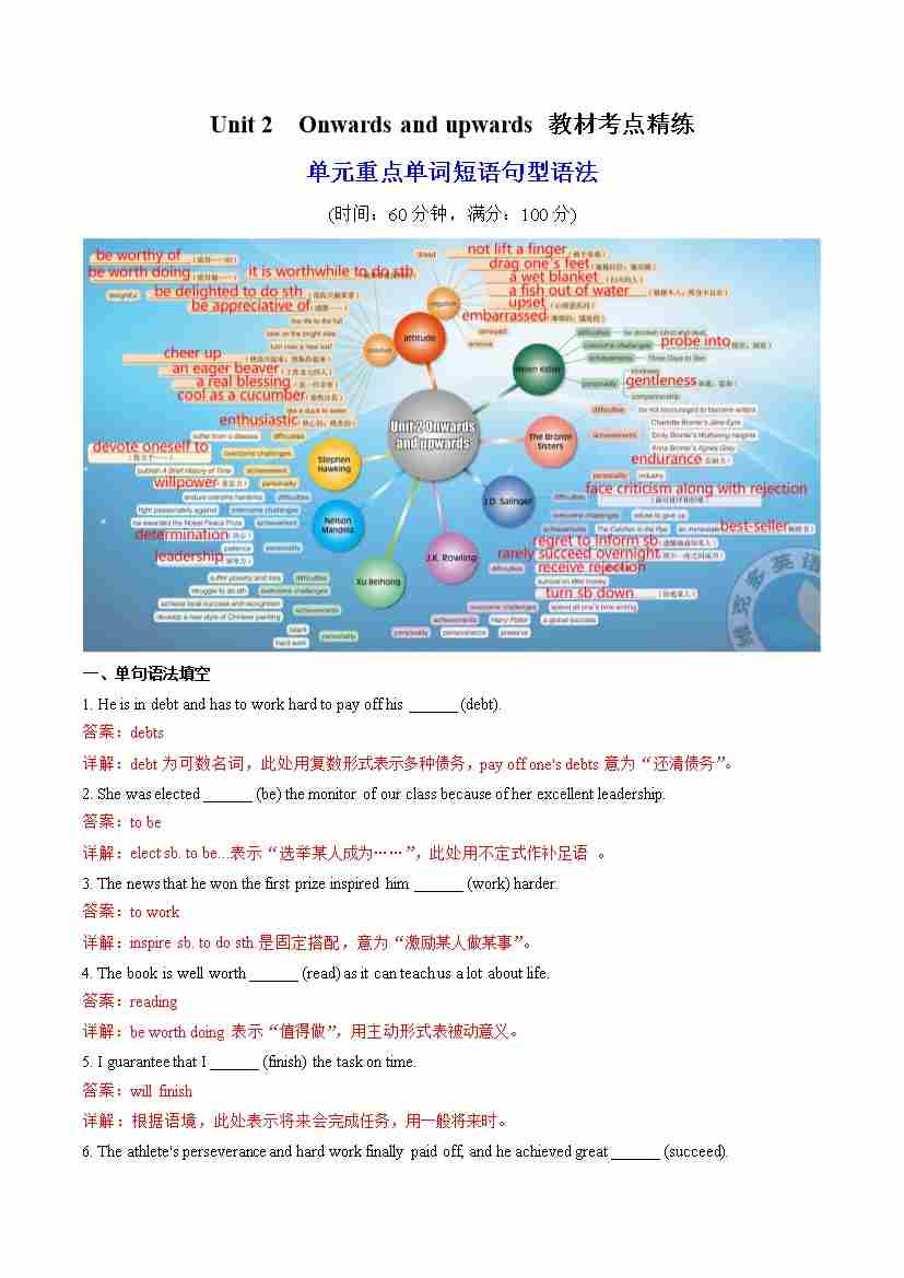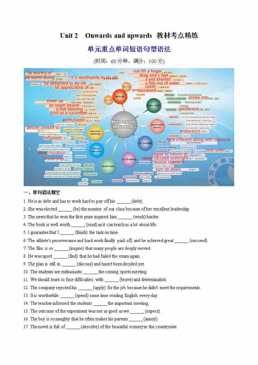 Unit 2 Onwards and upwards 单词短语句型语法(教材考点精练)(教师版)