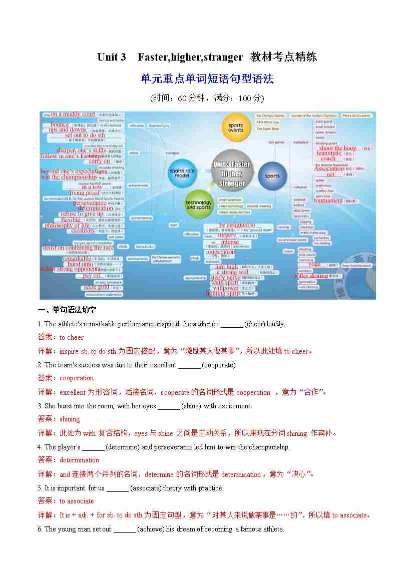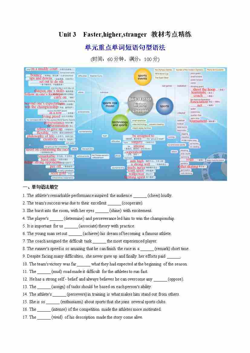 Unit 3 Faster,higher,stranger 单词短语句型语法(教材考点精练)(教师版)