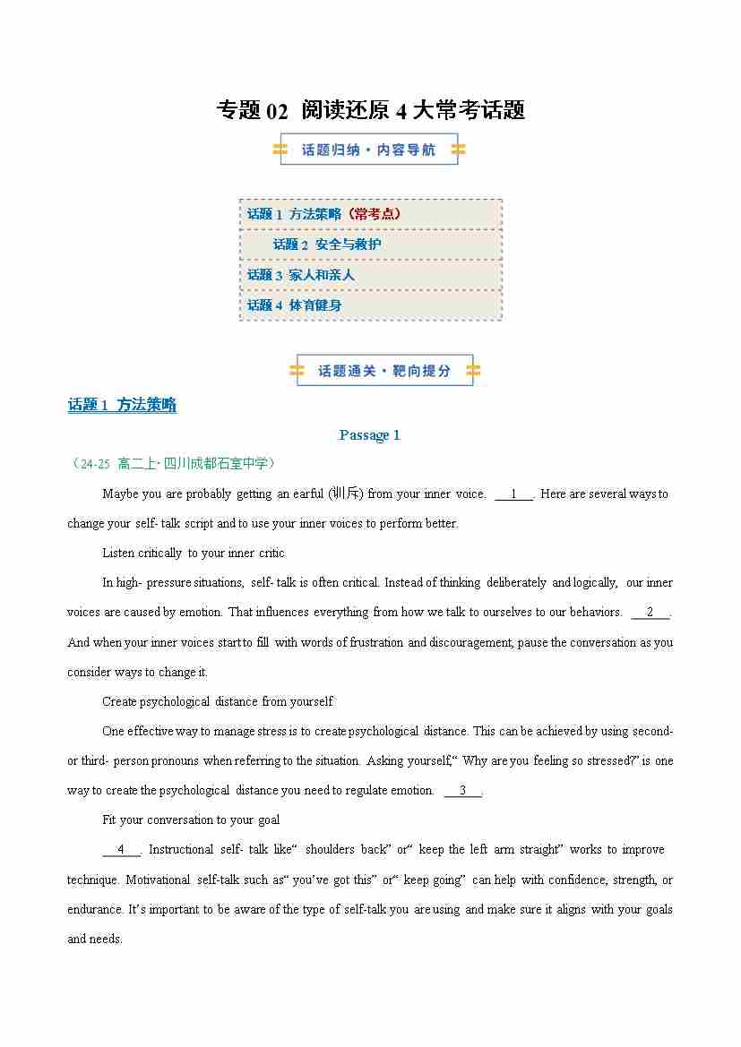 考前押题02 阅读还原4大常考话题(各地名校最新好题)(期末复习专项训练)(学生版)