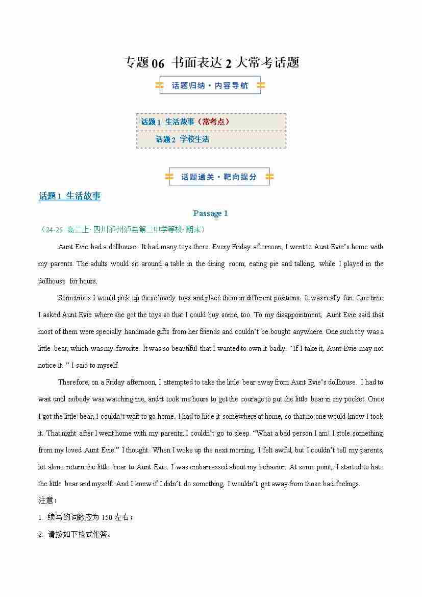 考前押题06 书面表达2大常考话题(各地名校最新好题)(期末复习专项训练)(学生版)