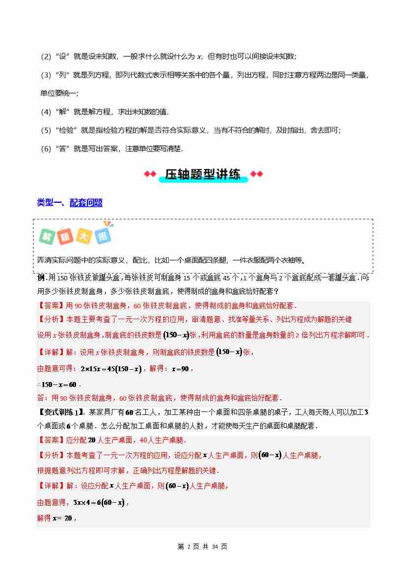 首页 > 全部 > 常考压轴题 > 专题11 一元一次方程实际问题十大类型-解析版