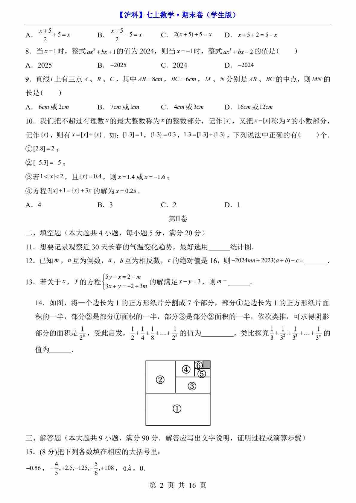 首页 > 全部 > 期末试卷 > 【沪科】7上数学期末卷【7上全册】