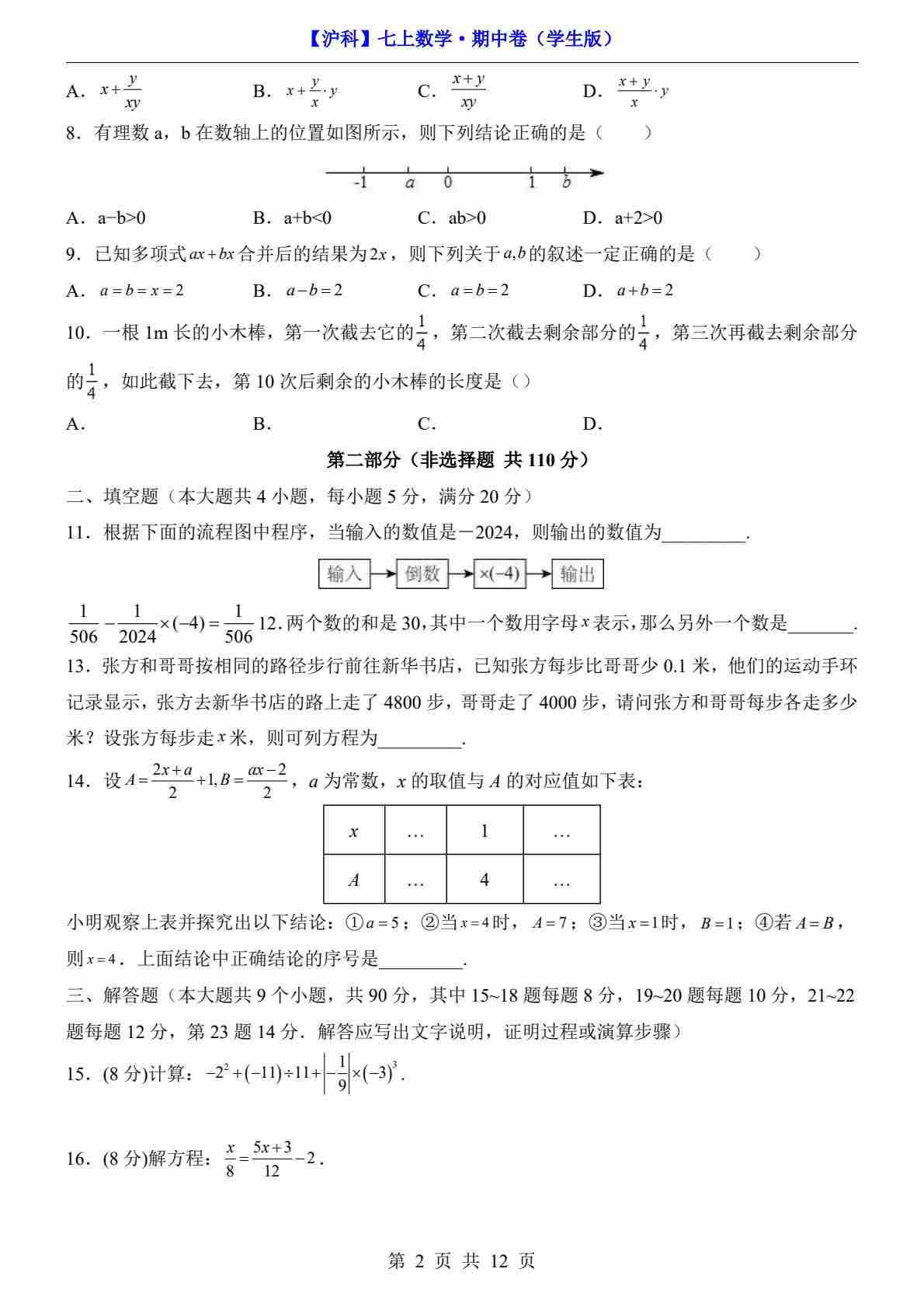 首页 > 全部 > 期中试卷 > 【沪科】7上数学期中卷【第1-3.3章】
