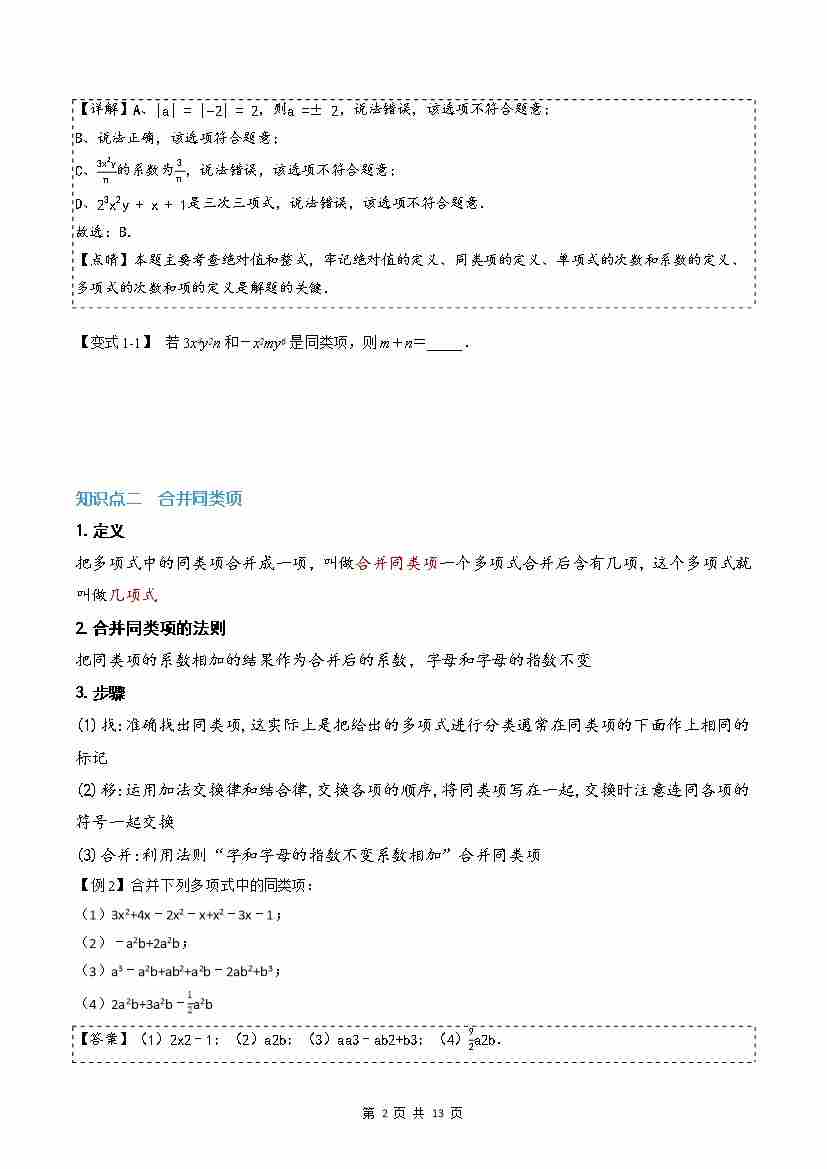 首页 > 全部 > 暑假自学课 > 第08讲 整式加减(原卷版)