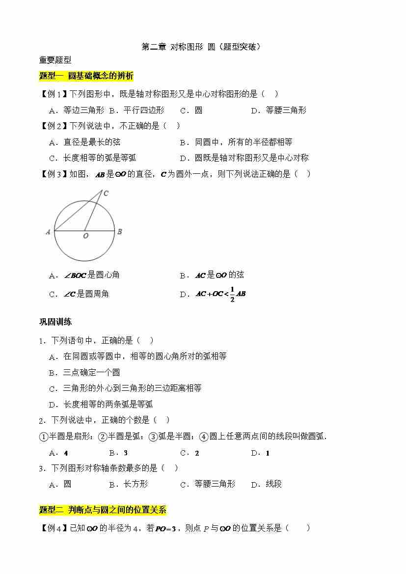 首页 > 全部 > 专题复习 > 第二章 对称图形—圆(13类题型突破)