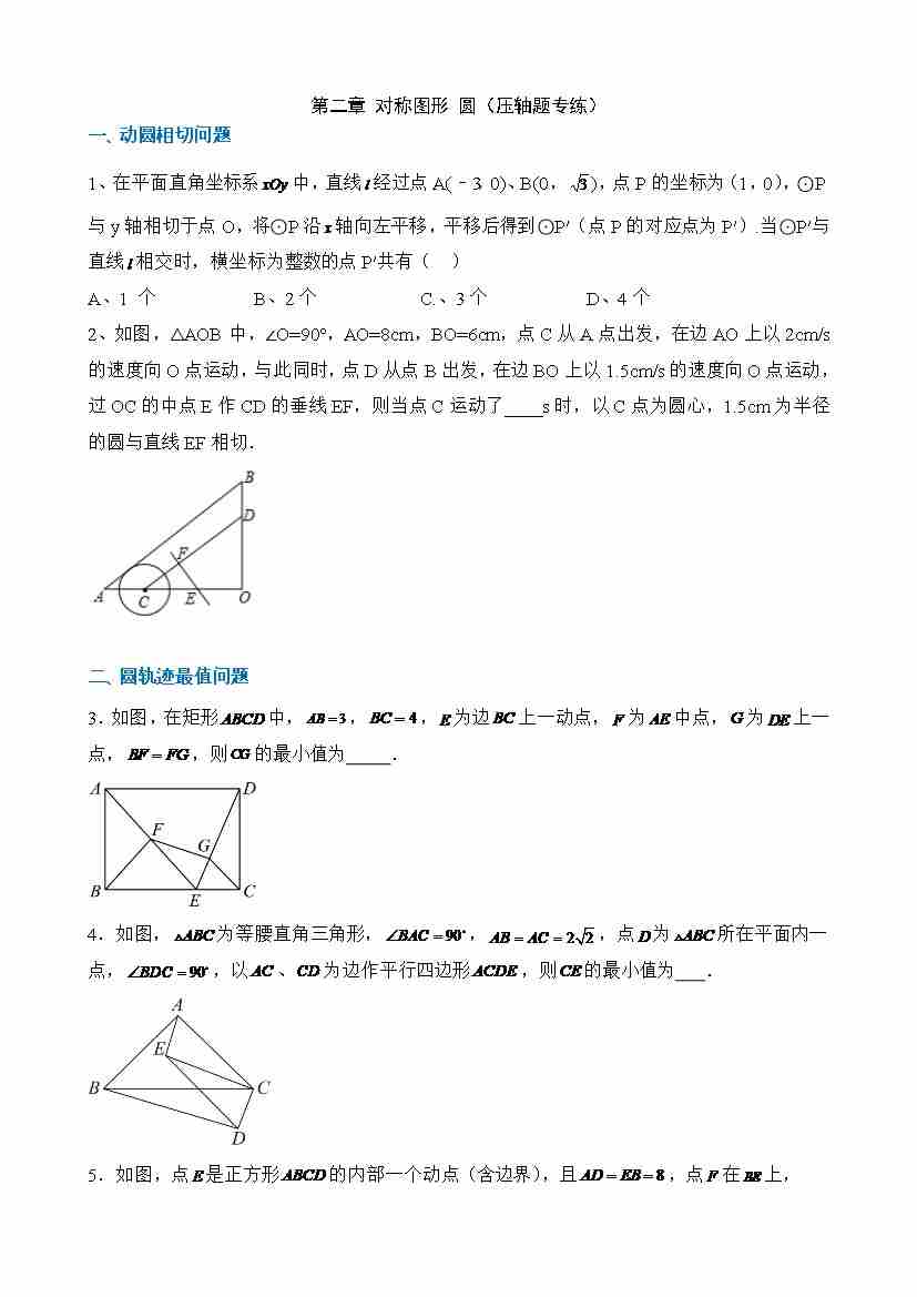 首页 > 全部 > 专题复习 > 第二章 对称图形—圆(3类压轴题专练)