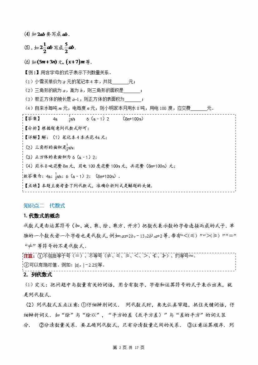首页 > 全部 > 暑假自学课 > 第07讲 代数式(原卷版)
