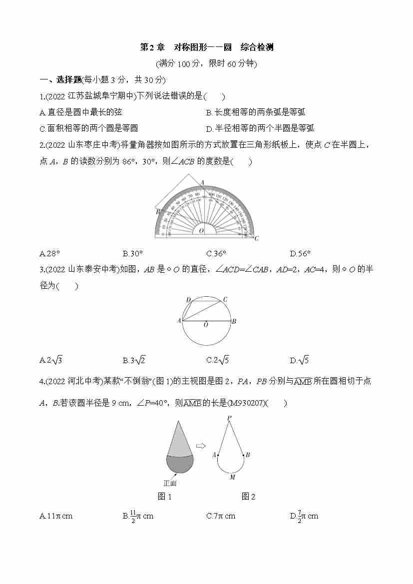 第2章 对称图形——圆 综合检测--