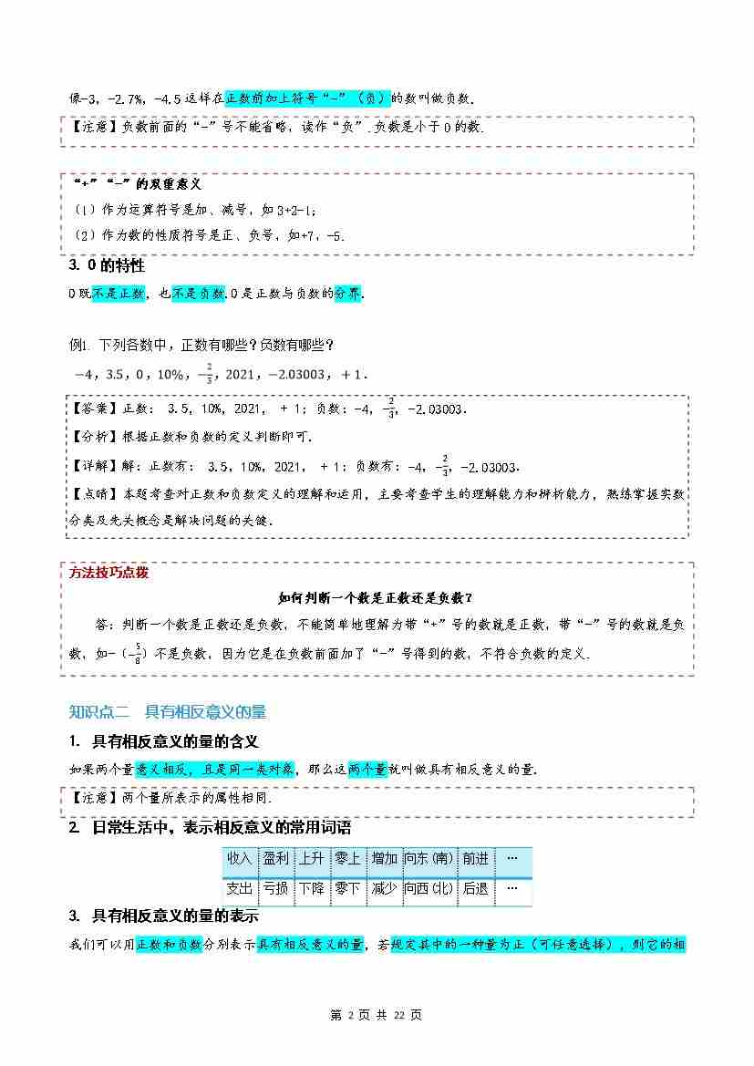 第01讲 正数与负数(解析版)