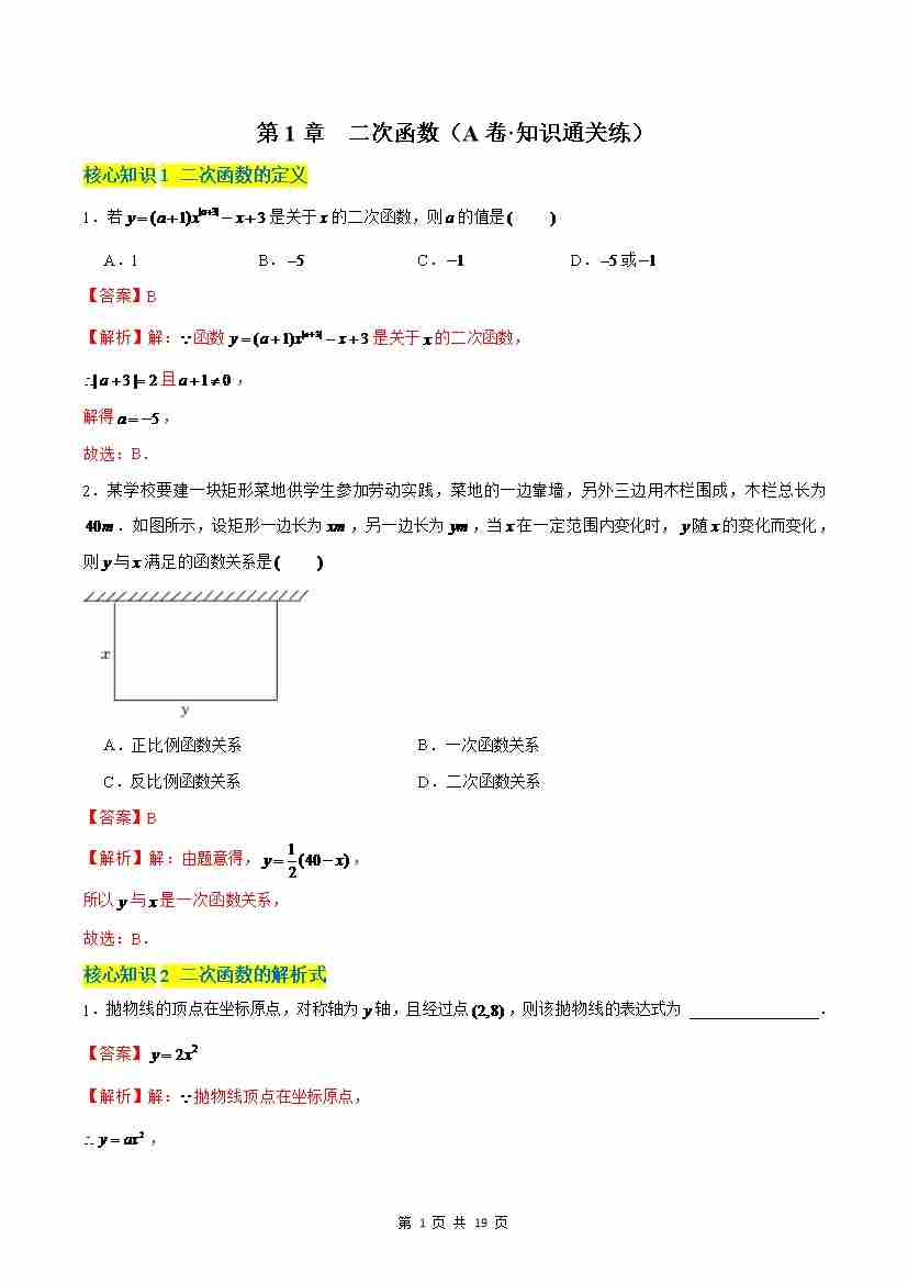 第1章 二次函数(A卷·知识通关练)(解析版)