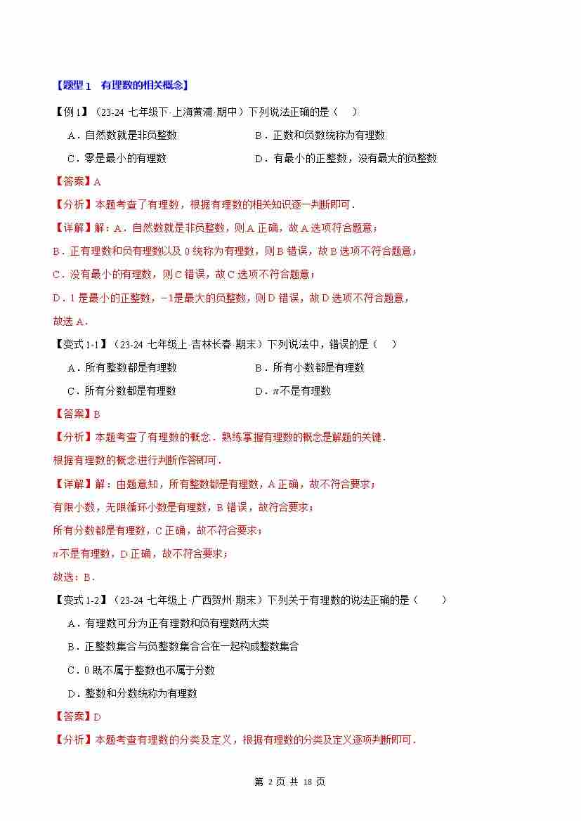 首页 > 全部 > 同步练习 > 专题1.2 有理数和数轴【九大题型】(解析版)
