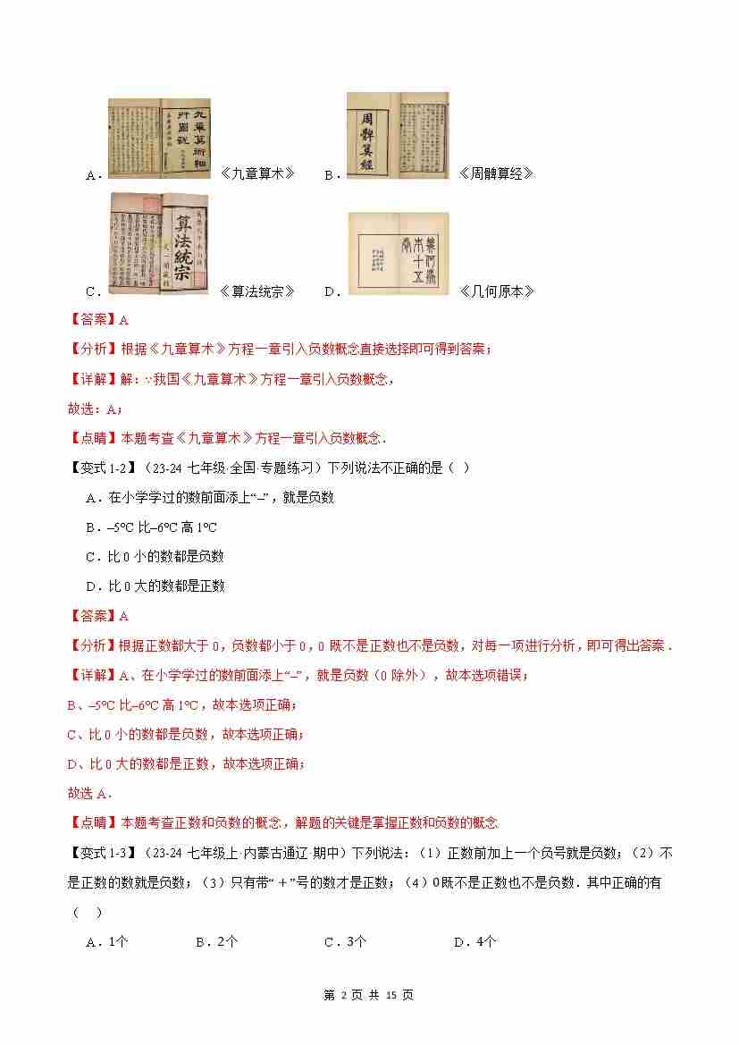 首页 > 全部 > 同步练习 > 专题1.1 正数和负数【九大题型】(解析版)