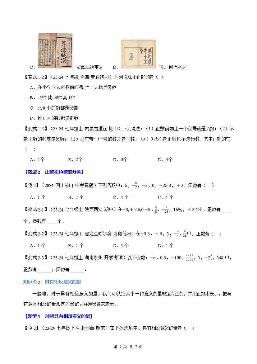 首页 > 全部 > 同步练习 > 专题1.1 正数和负数【九大题型】(原卷版)
