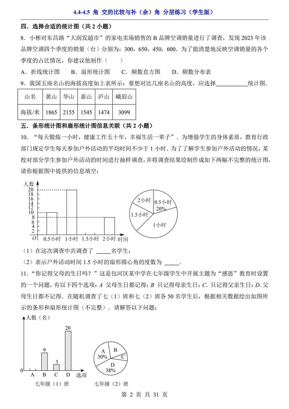4.4-4.5 角 角的比较与补(余)角(分层练习)