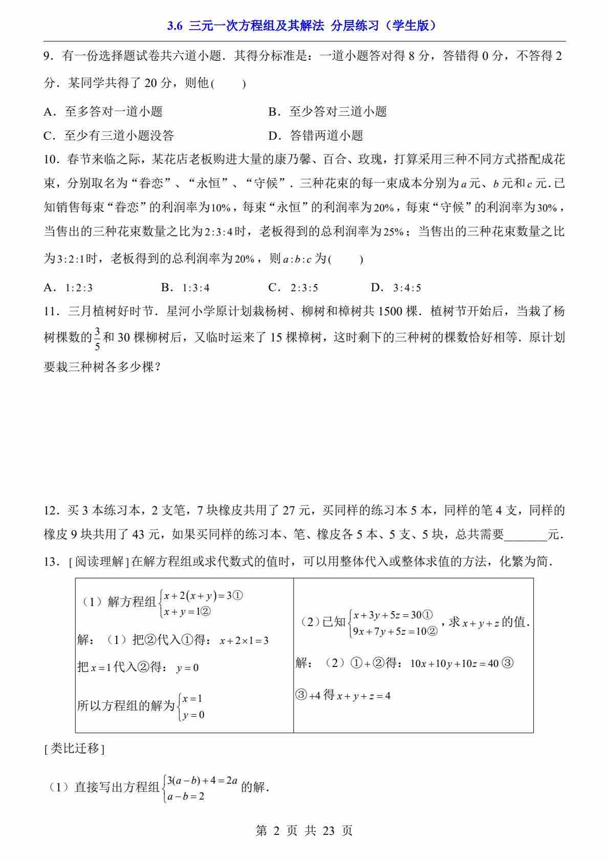 首页 > 全部 > 一课一练 > 3.6 三元一次方程组及其解法(分层练习)