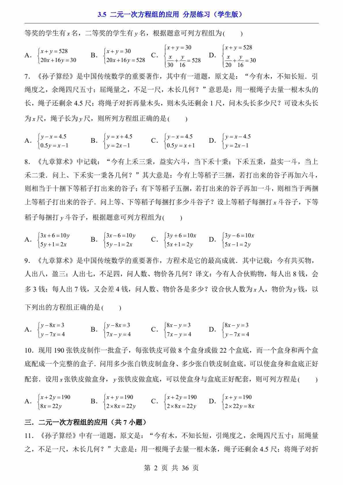 3.5 二元一次方程组的应用(分层练习)