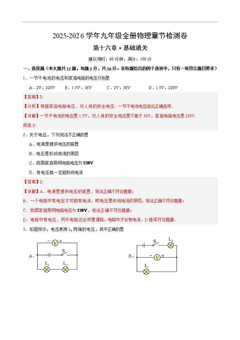 首页 > 全部 > 单元基础卷 > 九年级物理第十六章单元测试·基础卷(解析版)