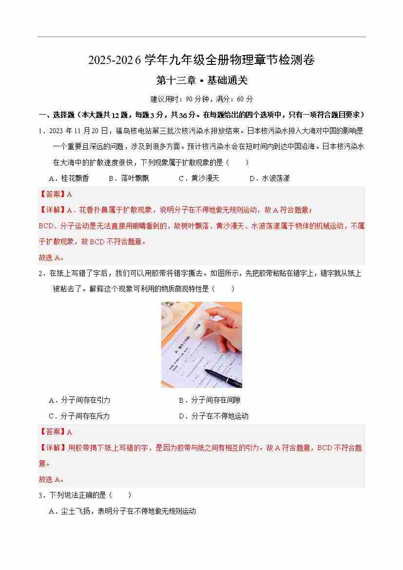 首页 > 全部 > 单元基础卷 > 九年级物理第十三章单元测试·基础卷(解析版)