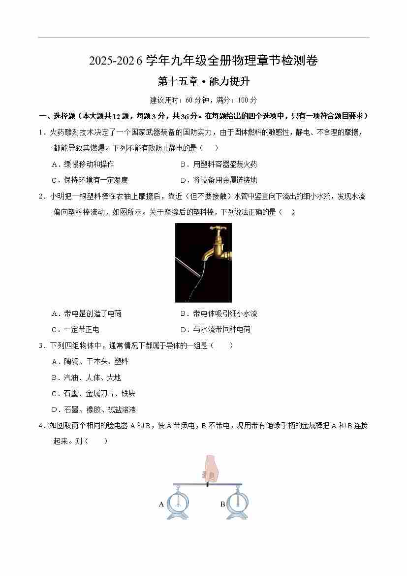 九年级物理第十五章单元测试·提升卷(考试版A4)