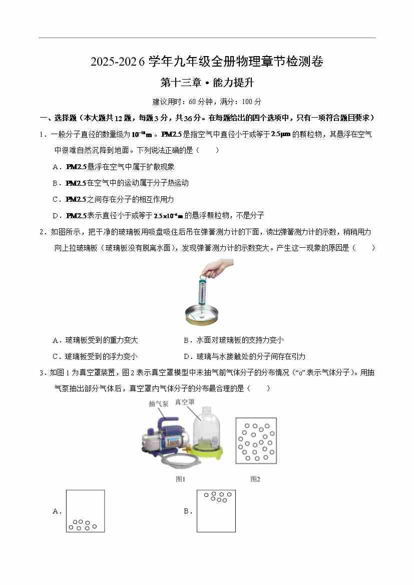 九年级物理第十三章单元测试·提升卷(考试版A4)