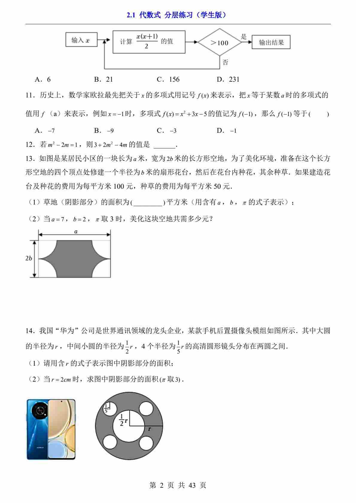 首页 > 全部 > 一课一练 > 2.1 代数式(分层练习)