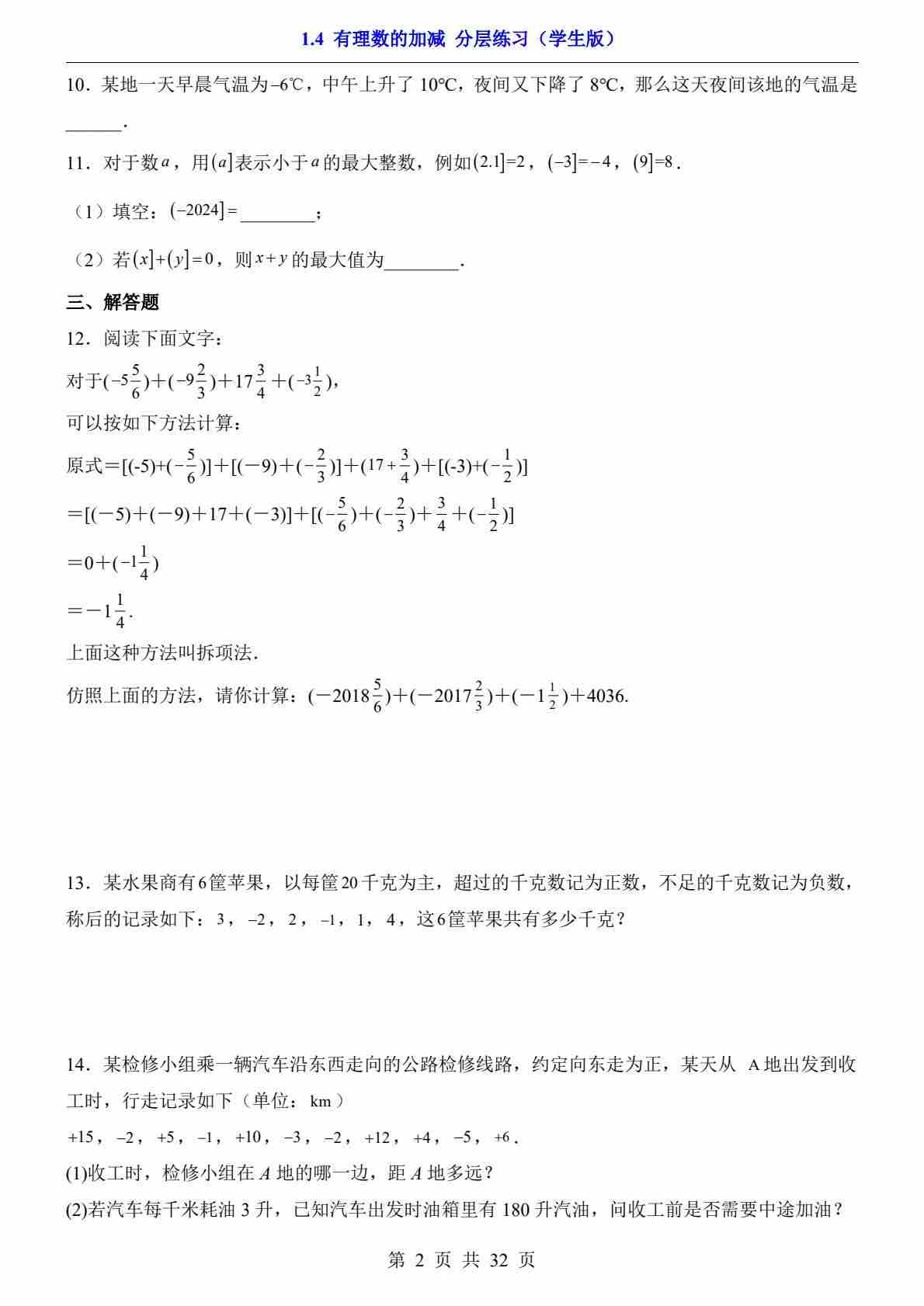 首页 > 全部 > 一课一练 > 1.4 有理数的加减(分层练习)